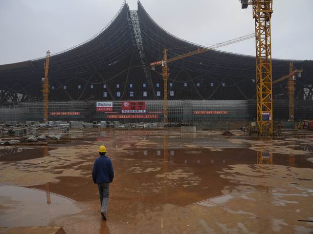 “提前完工!”,這是新機(jī)場項(xiàng)目部一個(gè)普通工長10月31日早上的QQ簽名,沒有太多言語的修飾。單看這句話,可能沒人知道他們在短短4個(gè)半月的時(shí)間里創(chuàng)造的一切:完成人工挖孔樁163棵,基礎(chǔ)模板量27505㎡,上部模板67616㎡,鋼筋10611t,混凝土澆筑54723m3。更沒人知道他們中途遭遇的重重困難:東、西擴(kuò)區(qū)同時(shí)施工導(dǎo)致周轉(zhuǎn)材料、勞動力投入量極大,雨季施工,水平運(yùn)輸材料...