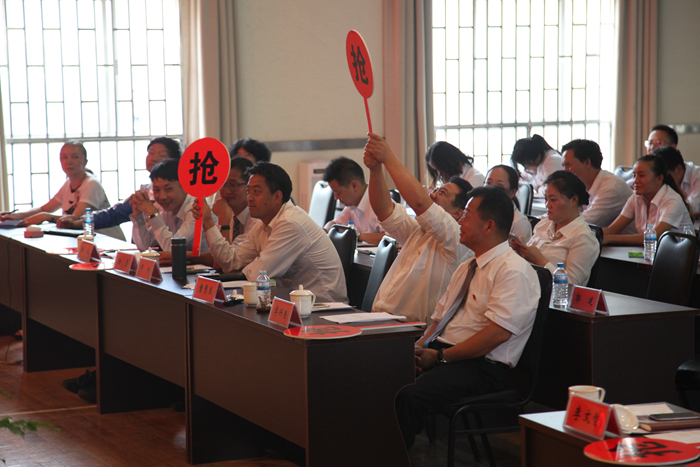 經(jīng)過初賽的角逐,進(jìn)入決賽的共有六支代表隊(duì),分別是:第五直管部、公司機(jī)關(guān)、五〇五直管部、五〇二直管部、租賃中心、第三直管部代表隊(duì)。決賽環(huán)節(jié)分為指定選手必答題、自選選手必答題、小組風(fēng)險(xiǎn)題、搶答風(fēng)險(xiǎn)題,決賽還特別加入了團(tuán)隊(duì)鼓勵題,由公司領(lǐng)導(dǎo)進(jìn)行搶答,為制定的代表隊(duì)進(jìn)行加分,極大的鼓舞了各代表隊(duì)的士氣。